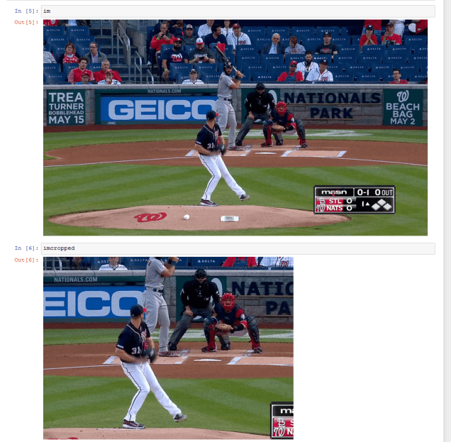 The next move, as I was looking at the results of the first trial tests, was to crop the image down to just the pitcher. My thoughts being that the model did not know I wanted it to focus on the pitcher, and that it if I was asking it to look for minute changes in the posture of the pitcher, but was including the crowd, umpire, catcher and batter, it was unrealistic to think it would pick up on it.